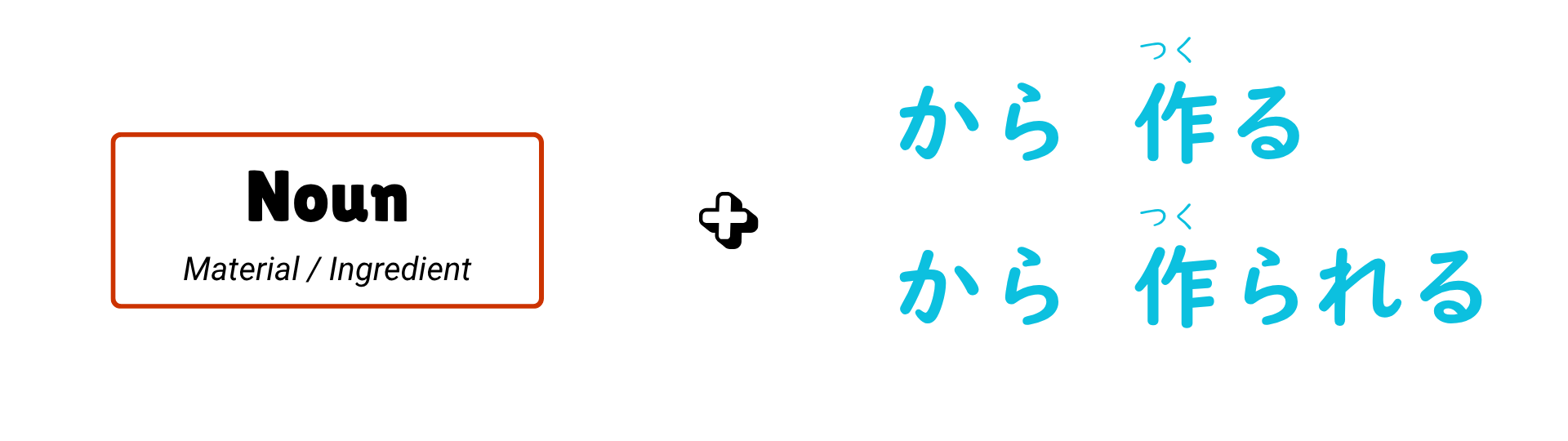 It’s perfect for talking about what things are made from, especially when the original material changes its form, like rice becoming sake or soybeans turning into tofu.