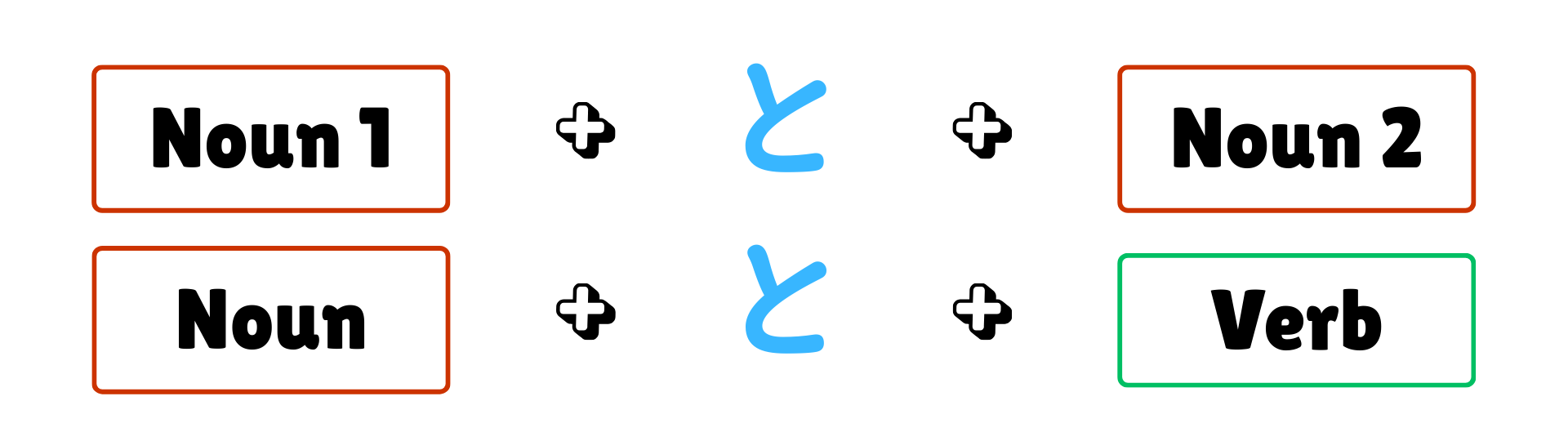 In Japanese, when you want to say “and” (connecting things) or “with” (doing something together), the magic particle you need is と (to)!